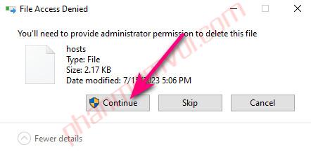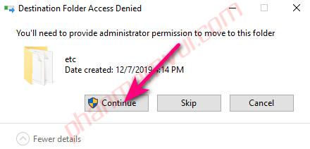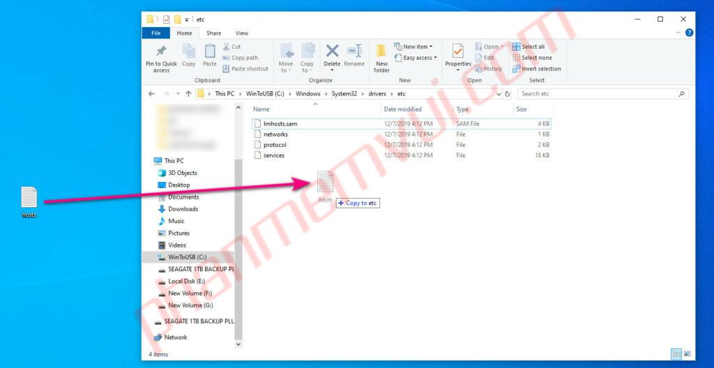 Kéo và thả file hosts mới từ màn hình chính vào thư mục