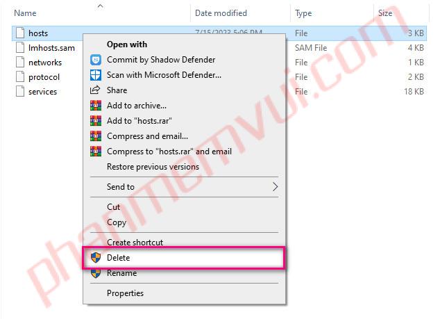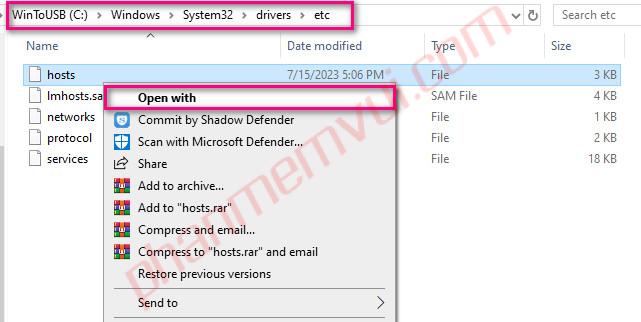 Sau đó click chuột phải vào file hosts và chọn Open with